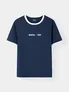 - Tay áo bo viền đồng bộ với cổ, giúp tổng thể gọn gàng hơn áo thun basic thông thường.